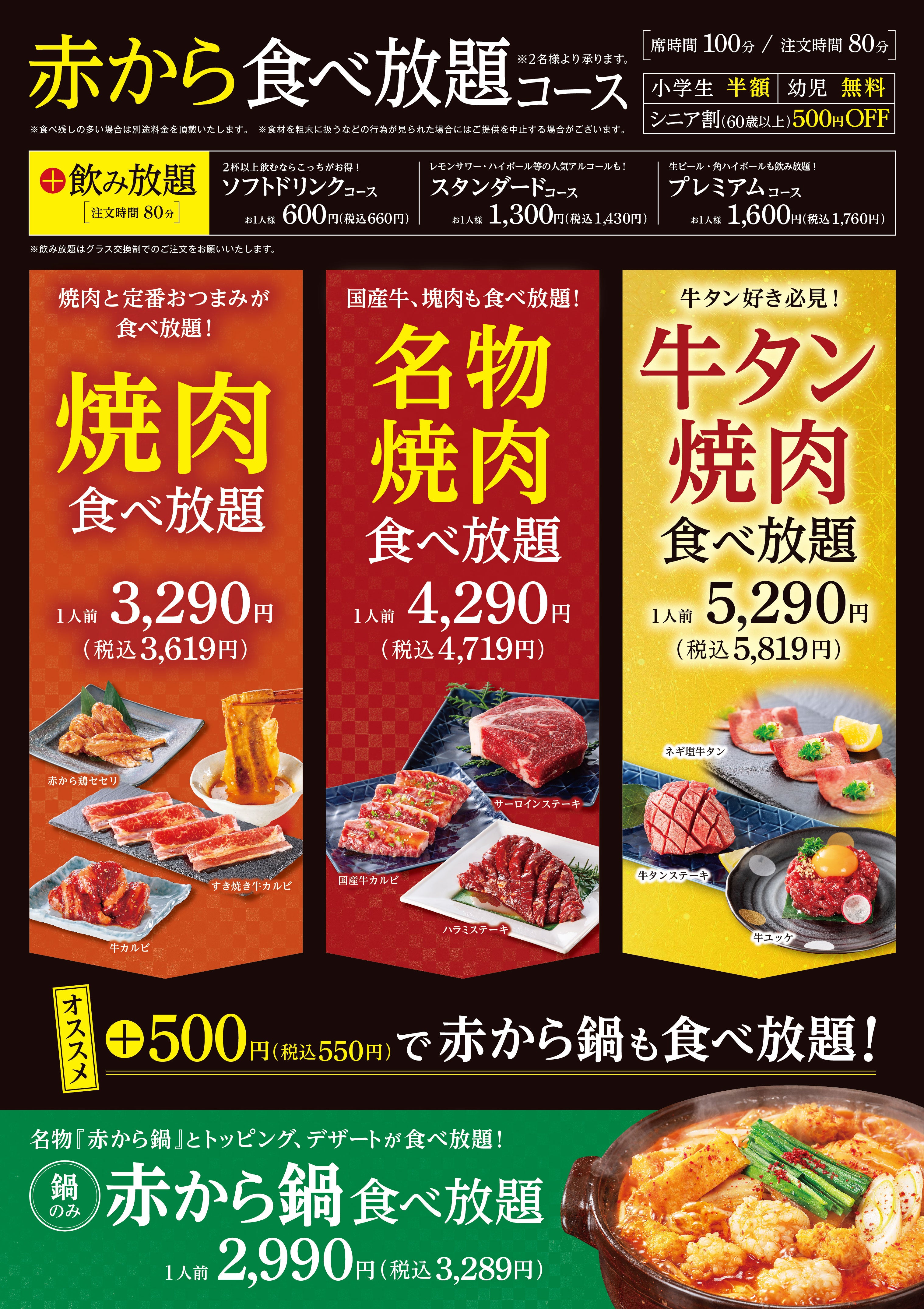 赤から食べ放題【石和店・三郷店・岡崎店・函館昭和店限定】